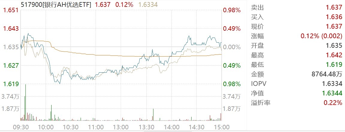 7月16日国内配资官网,AH银行股探底回升,港股工商银行领涨,邮储银行、中国光大银行、中国银行、民生银行等跟涨。银行AH优选ETF(517900)收涨0.12%,盘中一度接近1%,全天成交8764万元,放量回踩20日均线。